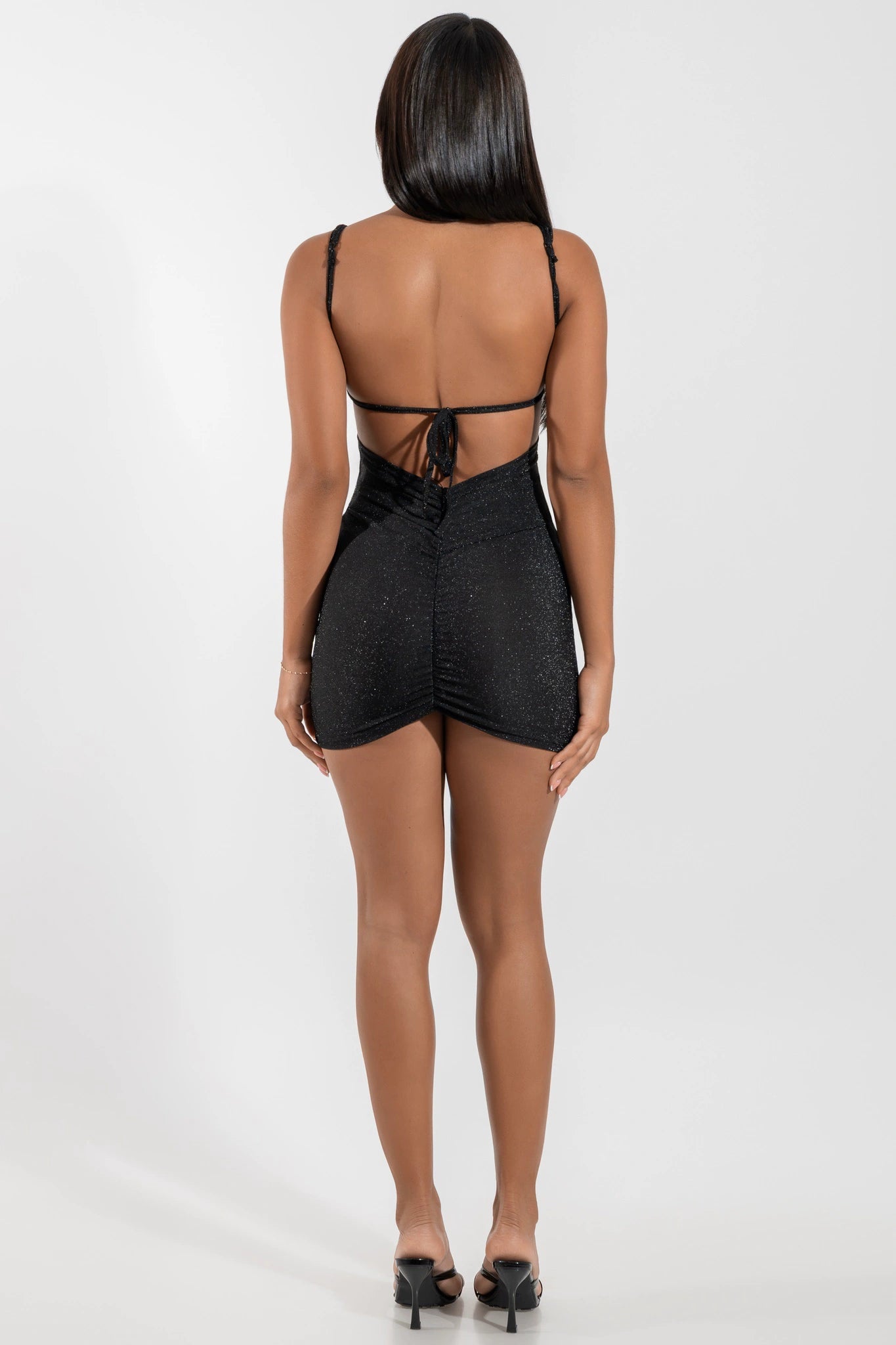 This mini dress hugs your body with a smooth, stretchy fit that highlights every curve. The subtle shimmer catches the light without overpowering the look, and the simple straps keep it clean and sleek. Flattering, easy to style and perfect for nights when you want a little shine while still showing your shape.